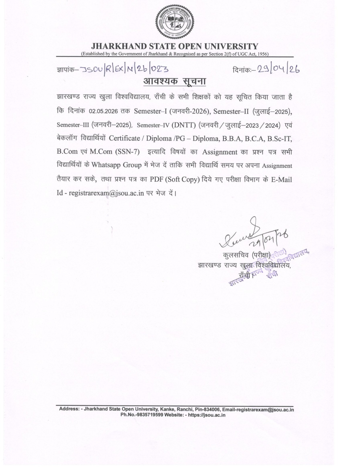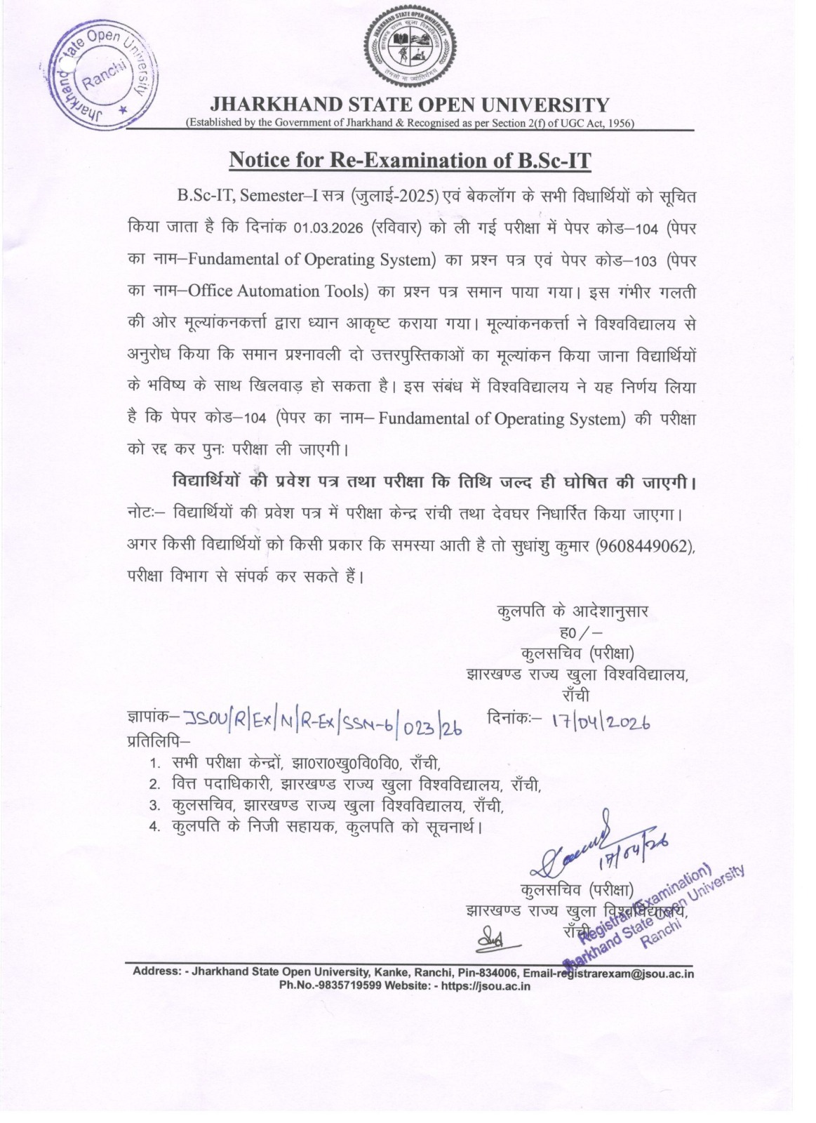 Welcome to Jharkhand State Open University - Admission Open BBA, M.COM, BCA, B.COM, BSC(IT) & Certificate, Diploma, PG Diploma Course