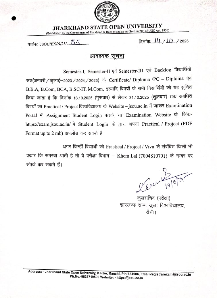 Welcome to Jharkhand State Open University - Admission Open Certificate,Diploma,PG Diploma Course