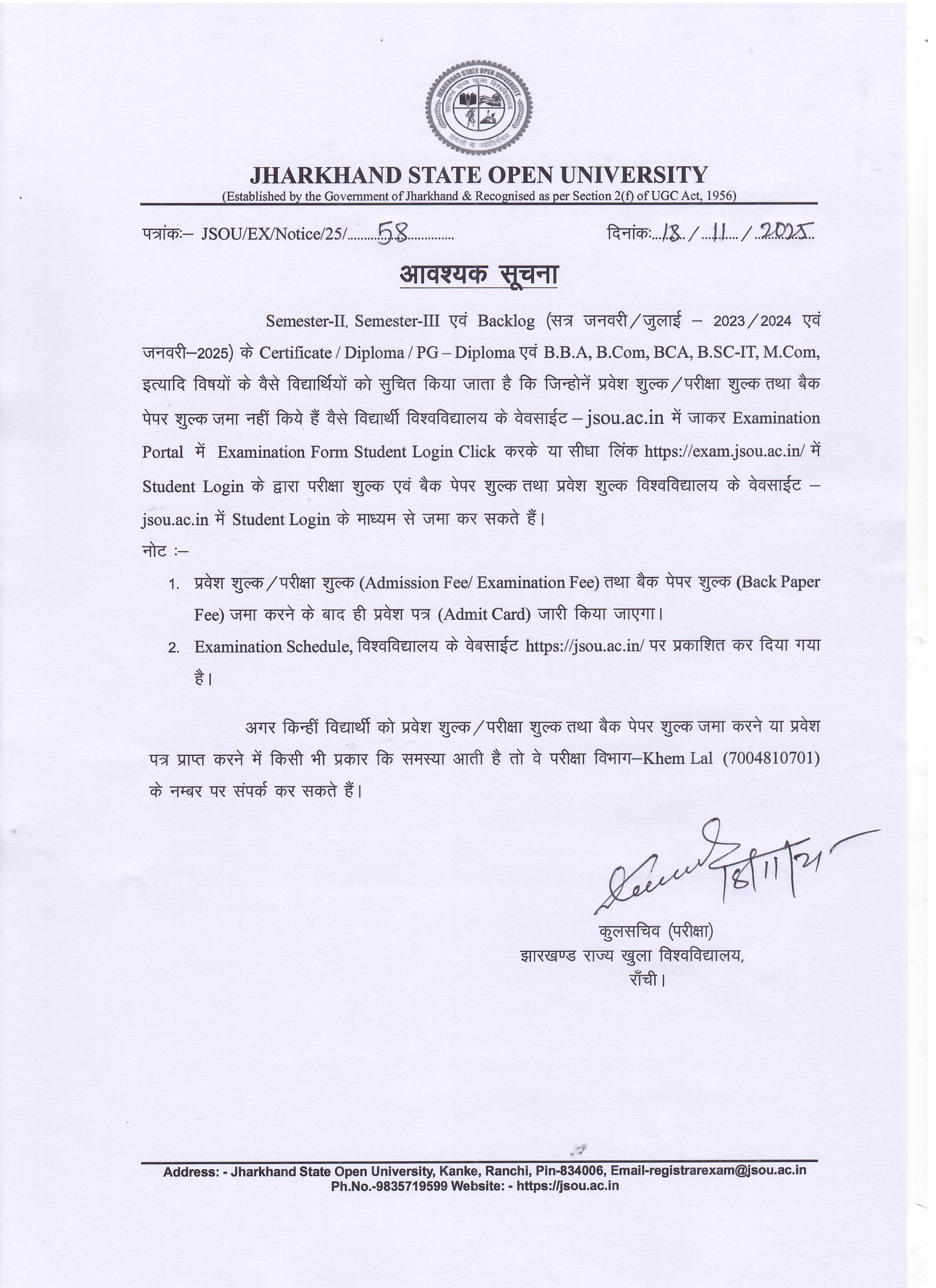 NOTICE_FOR EXAMINATION FEE AND BACK PAPER FEE FOR SEM 2 AND 3 (SSN 5) View File