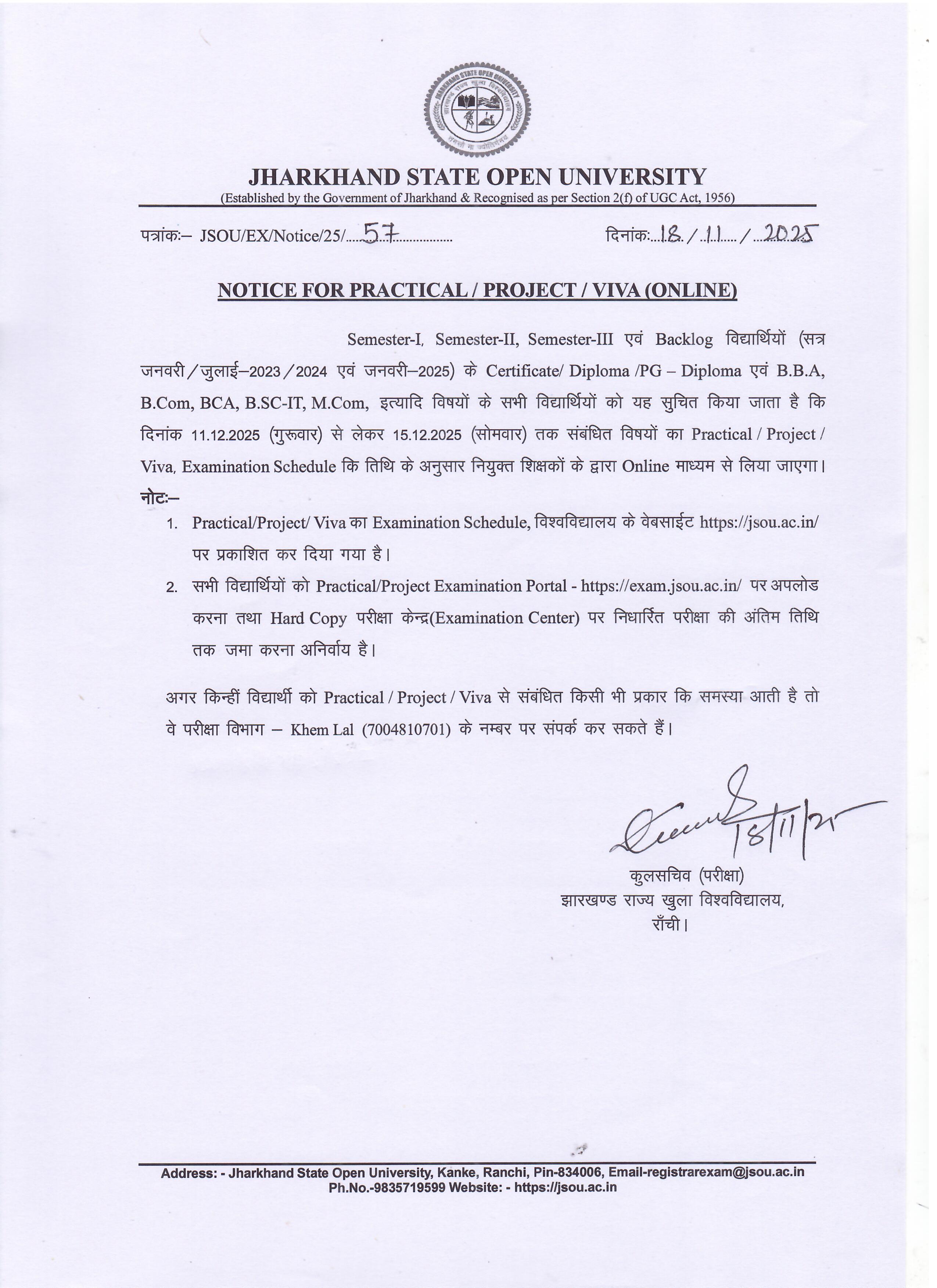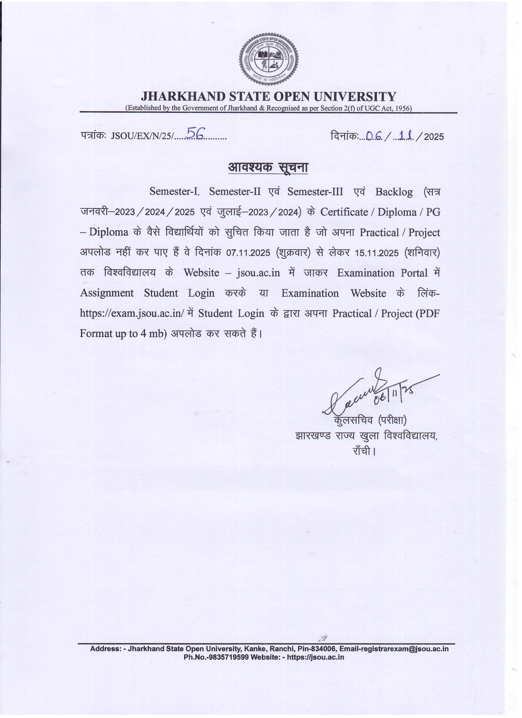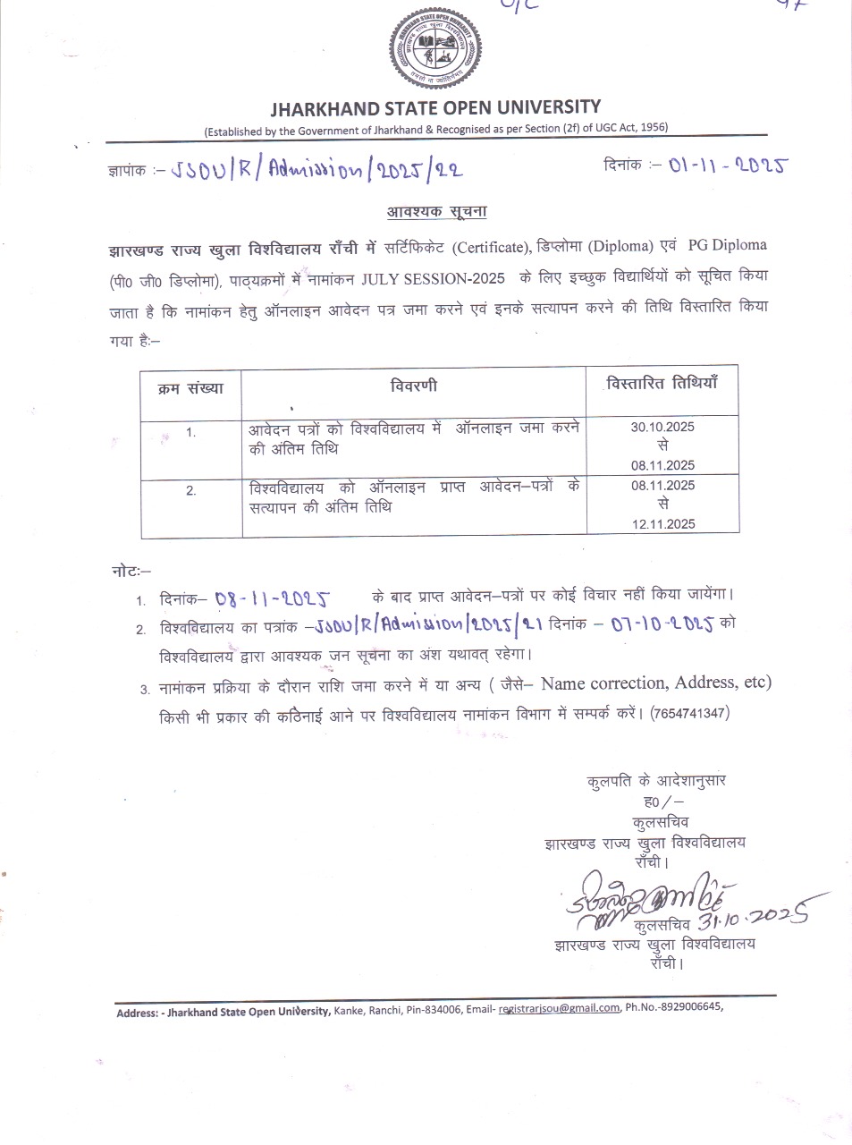 The Jharkhand State Open University, Ranchi has been established by the State Government of Jharkhand under the Jharkhand State Open University Act, 2021 (Jharkhand Act, 12, 2021) duly enacted by the Legislature of the State of Jharkhand and approved by the Hon'ble Governor, Jharkhand on 02.11.2021 for the introduction and promotion of Open University and distance education system in the educational pattern of the Jharkhand State and to provide educational opportunities to those who are unable to go in formal...