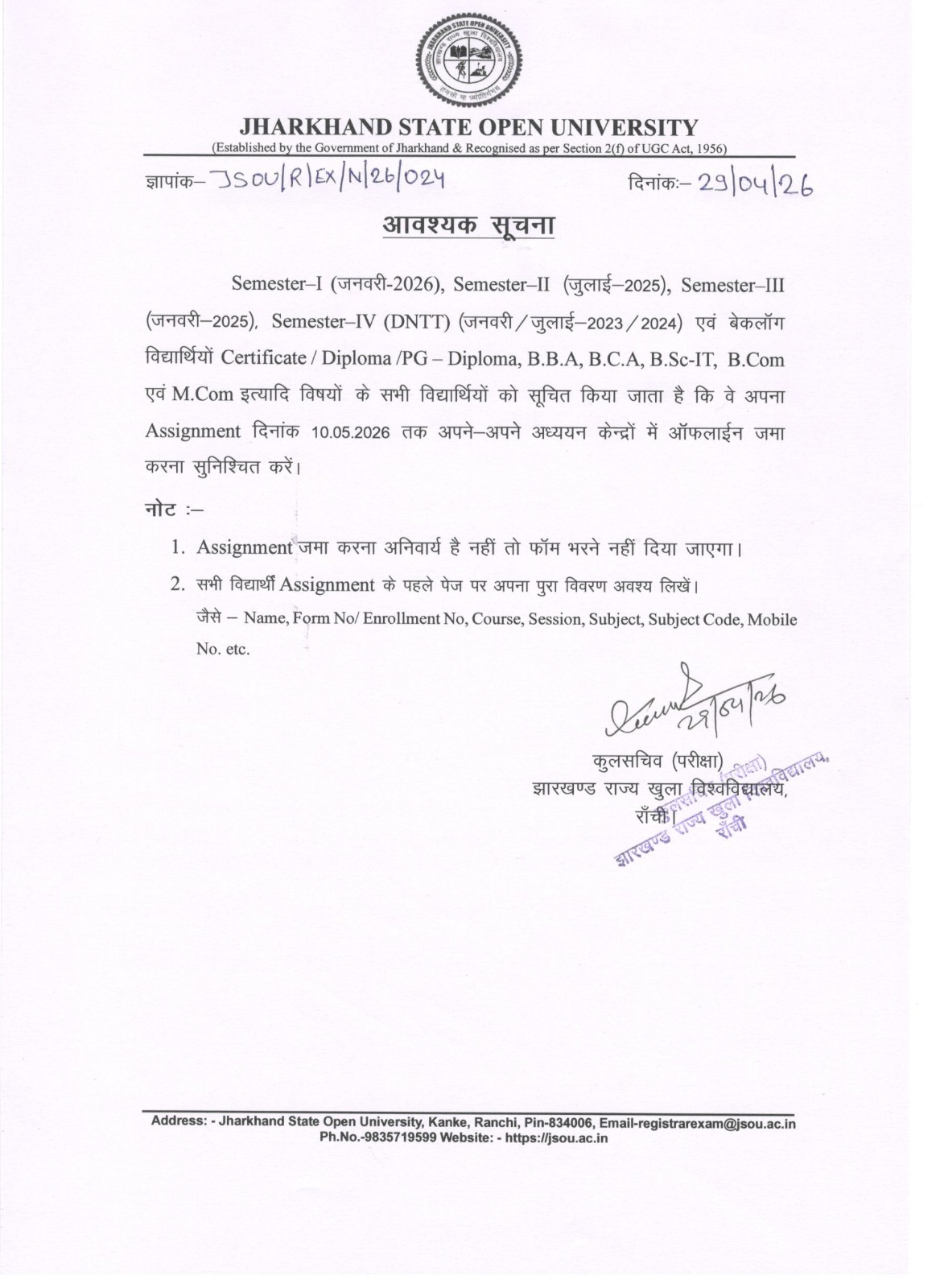 Welcome to Jharkhand State Open University - Admission Open BBA, M.COM, BCA, B.COM, BSC(IT) & Certificate, Diploma, PG Diploma Course